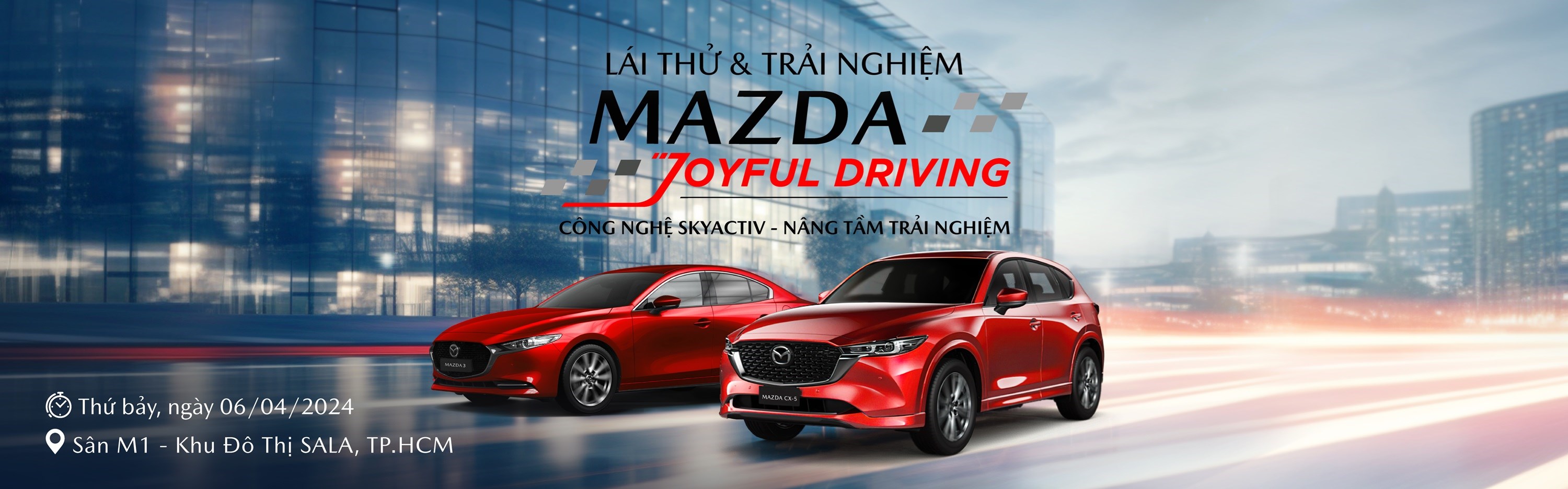 Nhằm mang đến cho khách hàng cơ hội trải nghiệm thực tế các sản phẩm Mazda thế hệ mới, đồng thời gia tăng kết nối giữa thương hiệu và khách hàng. Trong tháng 04/2024, THACO AUTO khởi động chuỗi sự kiện lái thử Mazda Joyful Driving trên toàn quốc và được tổ chức tập trung tại khu vực TP.HCM vào ngày 06/04, đáp ứng nhu cầu sở hữu xe tăng cao dịp lễ 30/04 và du lịch hè sắp tới.